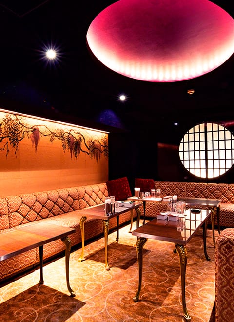 お二階にはグループごとにお席をお取りできるラウンジや、完全貸し切りでお愉しみ頂ける個室をご用意。大切な方とのひと時や、特別なお席での演出にもぜひご利用下さい。